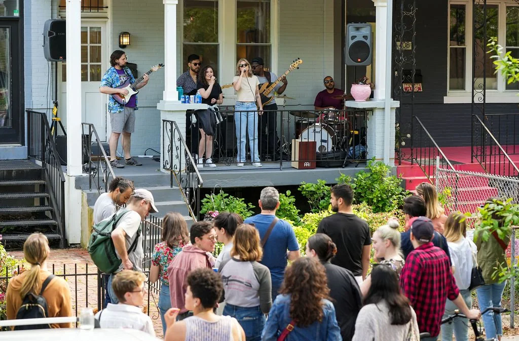 The event brings together community by offering Petworth residents an opportunity to host a local band on their porch, where residents and visitors can enjoy live music together. The aim of the event is to encourage the gathering of community, support local artists and businesses, and inspire people through the art of music.